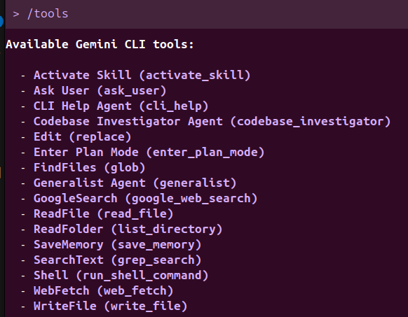In general, gemini-cli can already read your codebase with the “Codebase investigator Agent”. This gives gemini-cli the capabilities of reading your code. But now with the gopls tool, you are extending it’s capabilities. You give access to the actual understanding of your codebase via the AST.